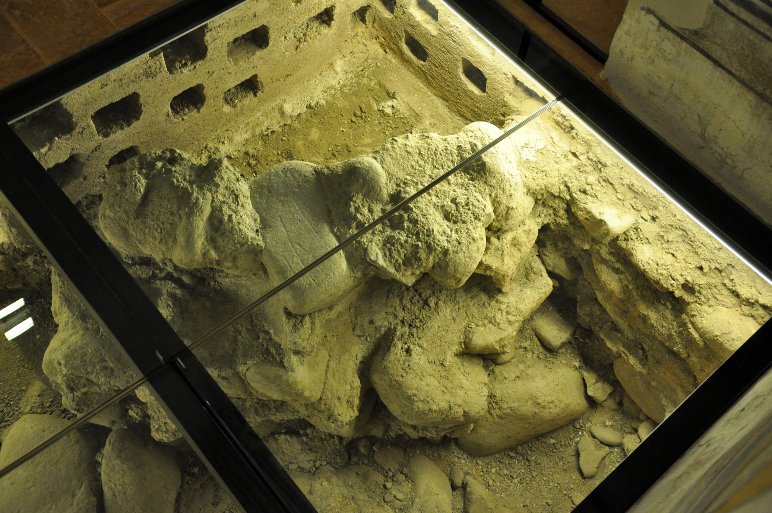 Sempre nell’aula gli scavi archeologici hanno rinvenuto diverse sepolture e l’estradosso di otto camere sepolcrali ipogee i cui sigilli sono ancora oggi visibili sul pavimento. Da una sepoltura è stato possibile recuperare quasi integralmente un abito funebre, poi restaurato e oggi conservato in una apposita teca visibile ai visitatori.